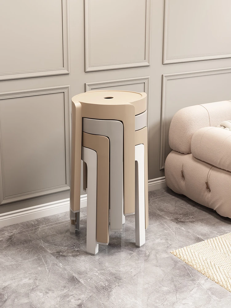 Modern Stackable Soft Plastic Stool for Home - Thick Dining High Chair, Simple Design for Living Room or Dining Table, Comfortable and Space-Saving
