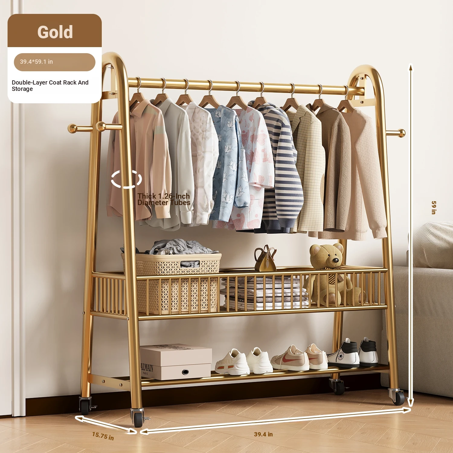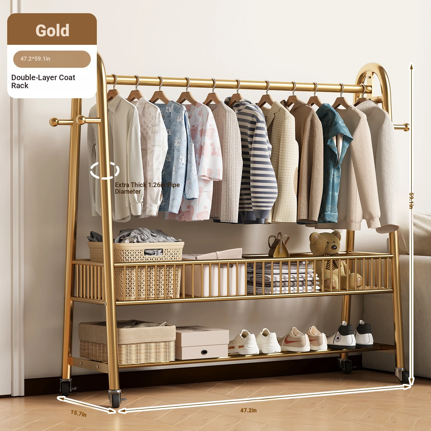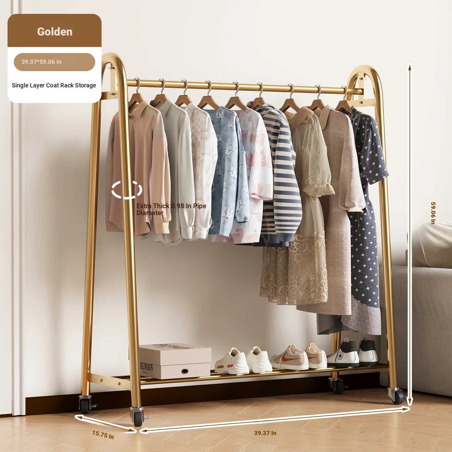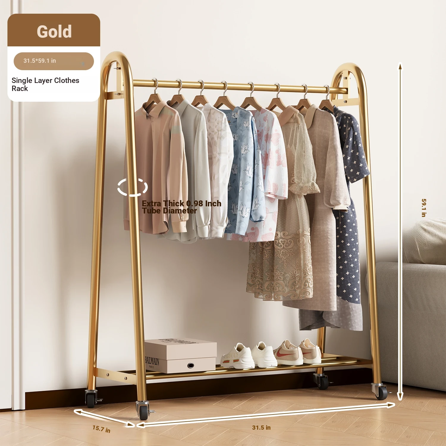 [Extra Thick 25 Tubes] Golden 39.37in*59.06in High-Single Layer Clothes Hanging