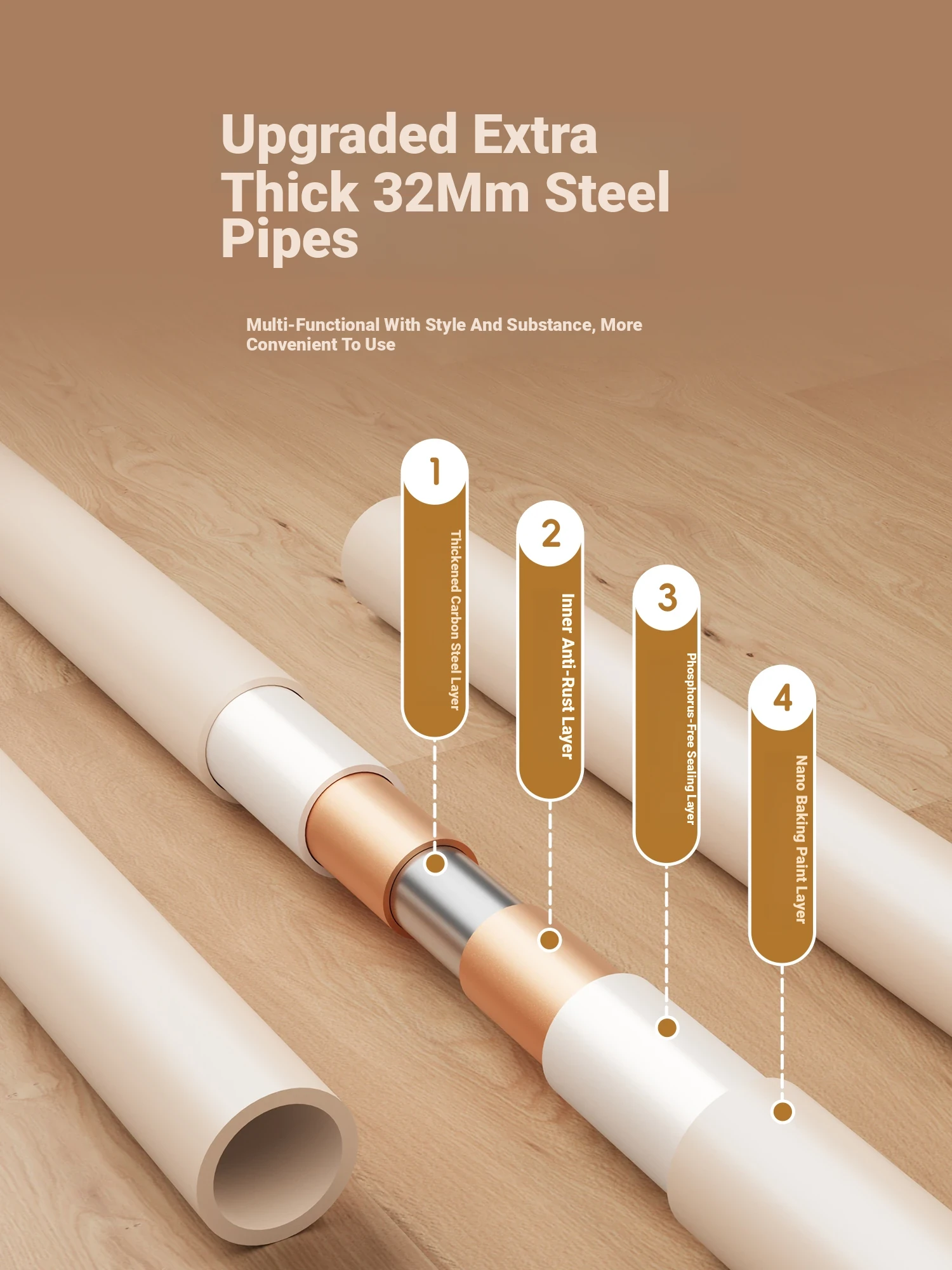 Thick and huge 32 pipe diameter! Stronger load!