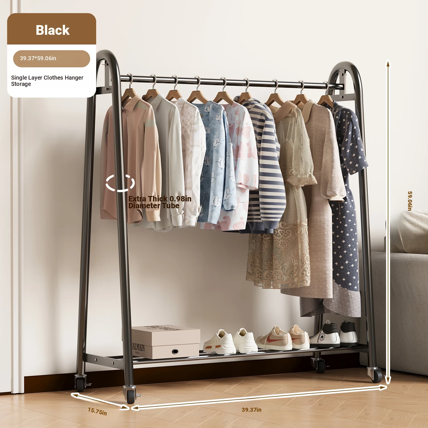 [Giant Thick 32 Tube-Double Rod Clothes Drying] Classy Black 39.37in*74.80in-Wheel Delivery