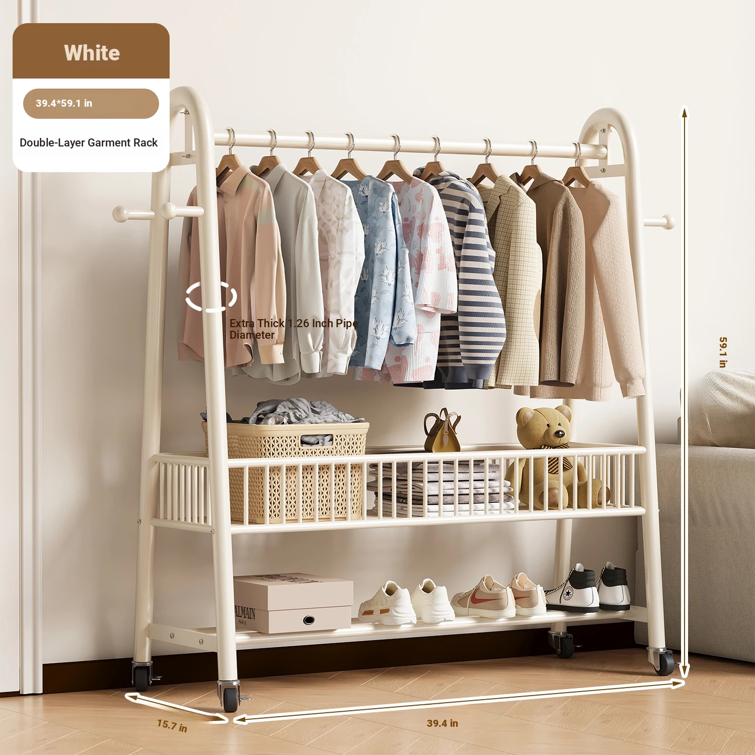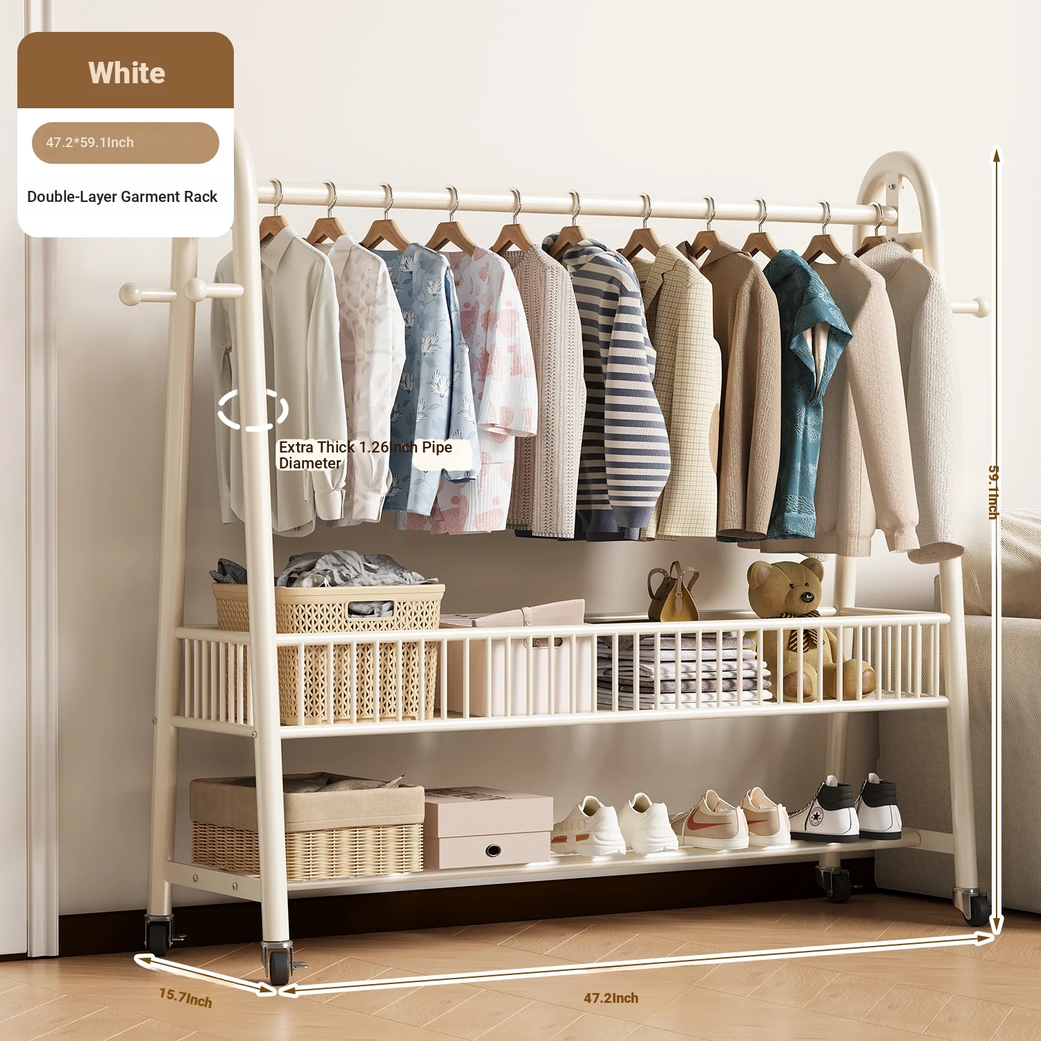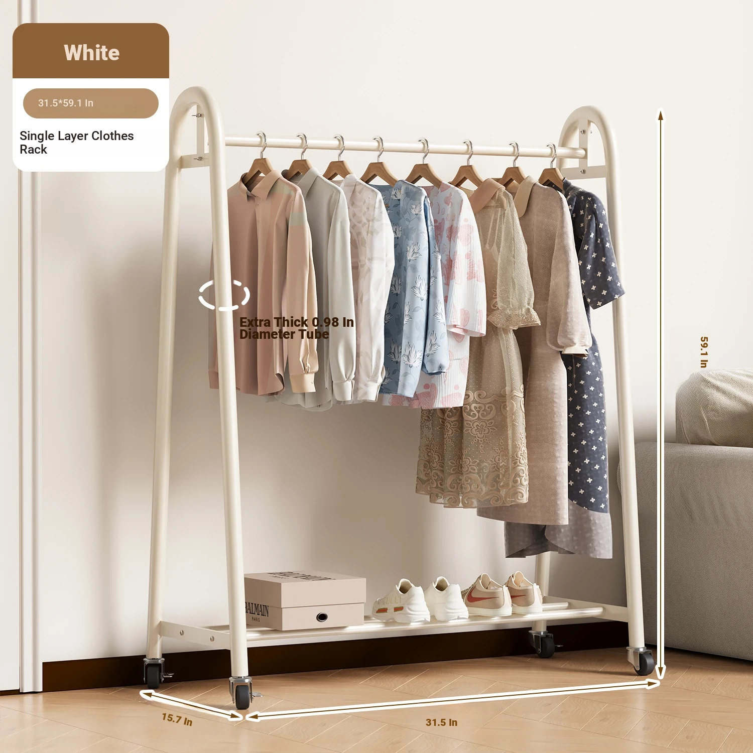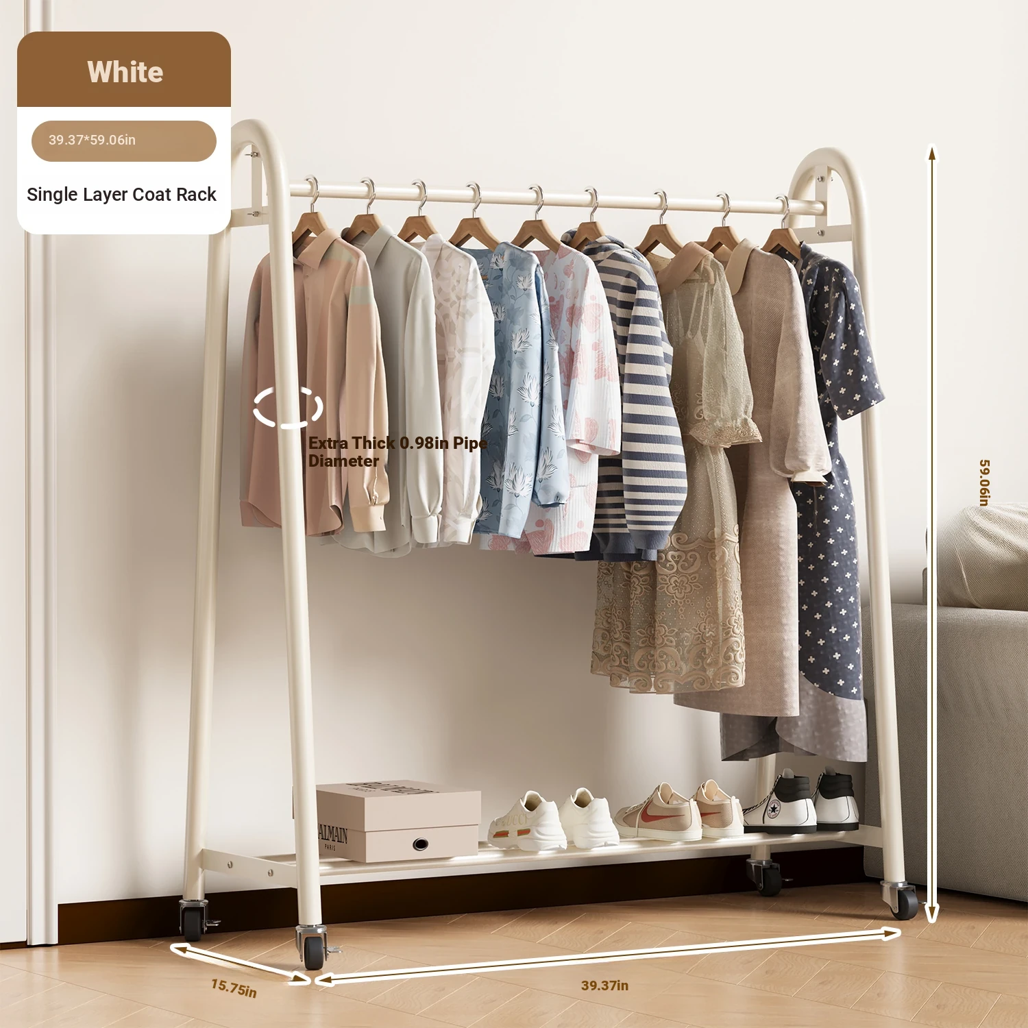 [Extra Thick 25 Tubes] White 39.37in*59.06in High-Single Layer Clothes Hanging
