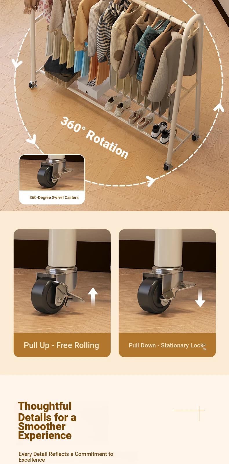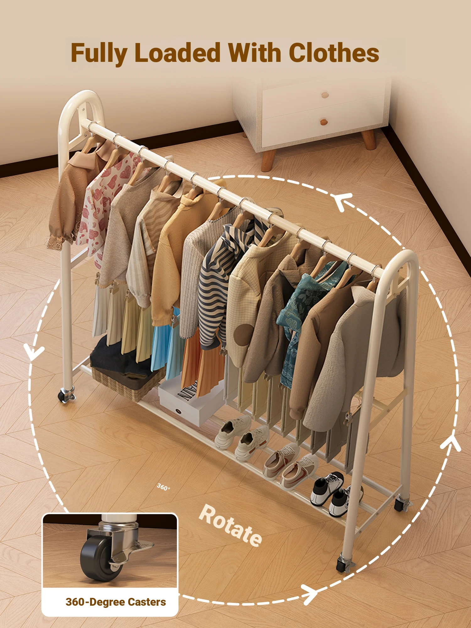 [Giant Thick 32 Tubes-Double Rod Clothes Drying] Cream White 23.62in*74.80in-Wheel Delivery