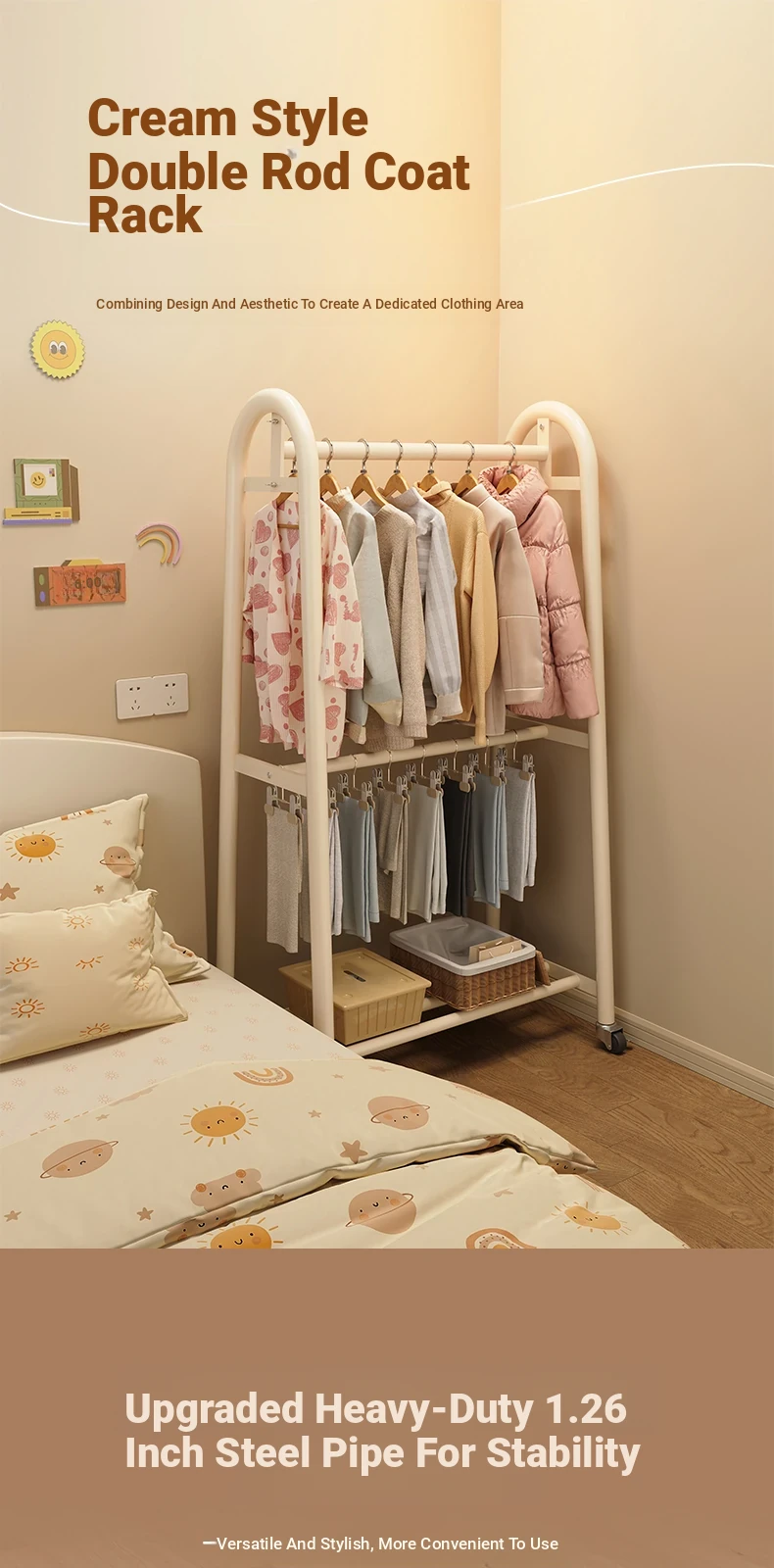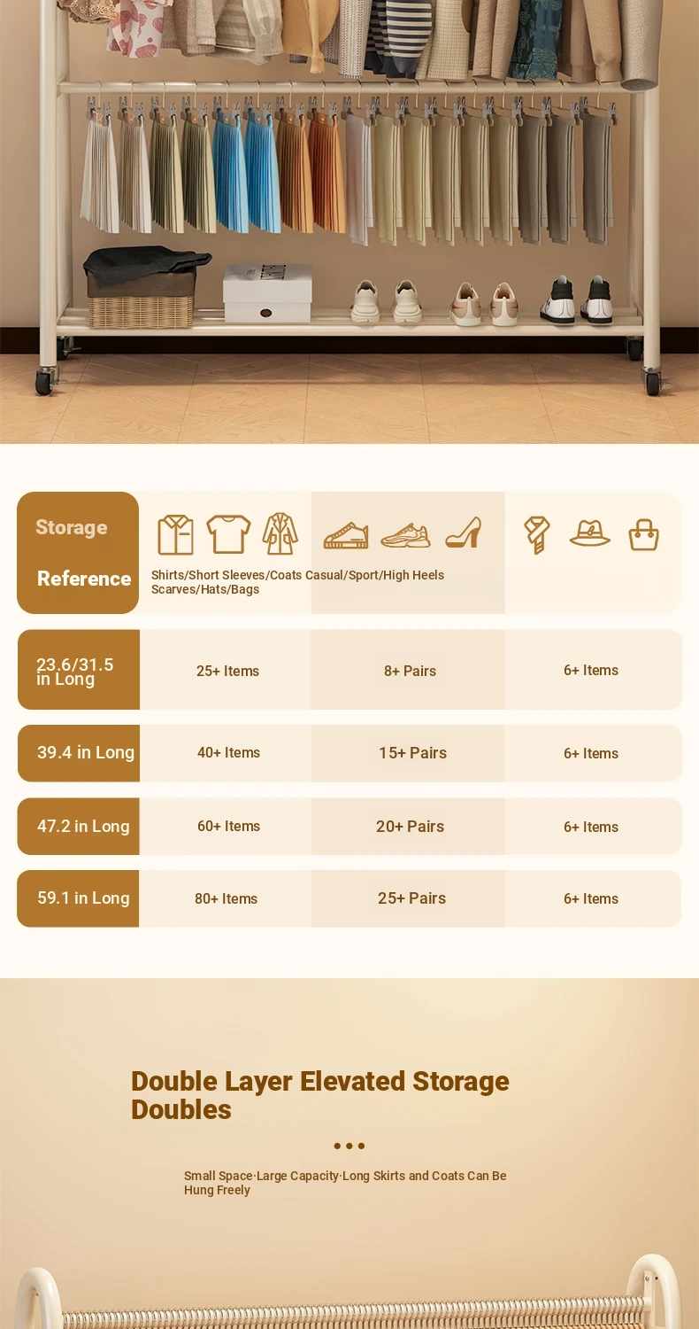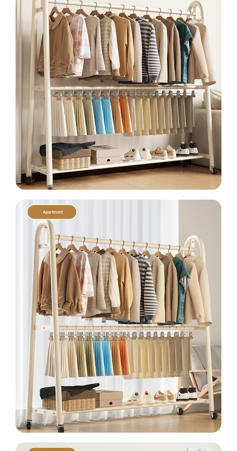 Special offer [giant thick 32 tubes-double rod clothes] cream white 23.62in*74.80in-send wheels