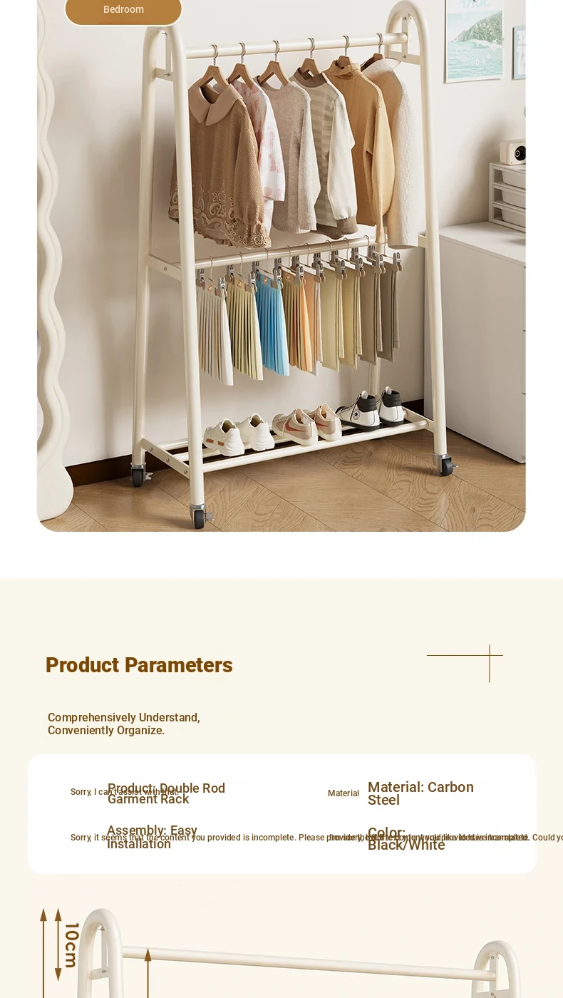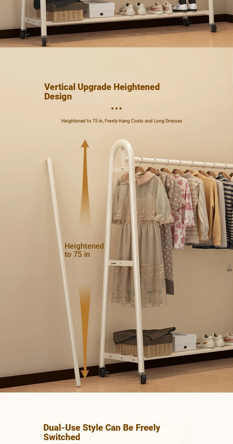 "Stylish Floor Clothing Rack & Coat Stand - Portable Hanging Organizer for Bedroom, Dorm, and Indoor Use – Easy Assembly and Ideal for Clothes Storage & Drying"